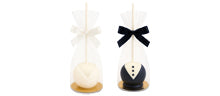 Nasze weselne cake popsy zachwycają również smakiem: wersja panny młodej oferuje delikatny, waniliowy smak, podczas gdy wersja pana młodego ma czekoladowe nadzienie. Każdy cake pop jest indywidualnie zapakowany w przezroczystą folię i ozdobiony odpowiednią kokardką: białą dla panny młodej, czarną dla pana młodego. Niezależnie, czy będą one główną atrakcją na stole słodkości, prezentem dla gości, czy małym podziękowaniem dla weselnych gości – te cake popsy przyciągają wzrok i na pewno wzbudzą zachwyt. Zamów teraz online i uczynij swoją uroczystość jeszcze bardziej niezapomnianą dzięki słodkim detalom!